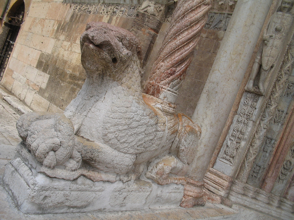 Sulla porta del duomo di Verona ci sono due Grifoni, il leone unito all’aquila, simbolo della forza e della signoria di Cristo, come in cielo così in terra.