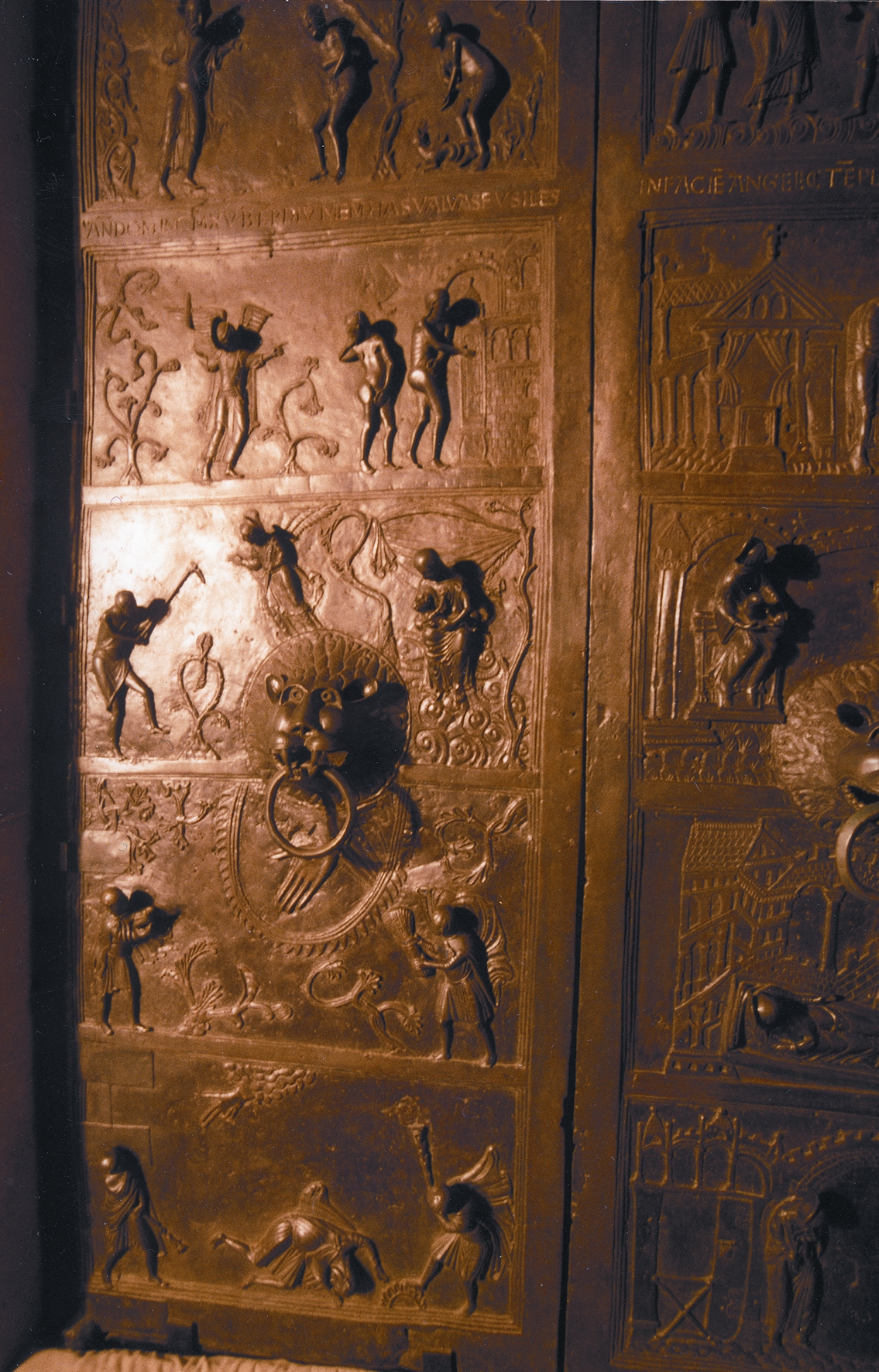 La chiesa di S. Michele a Hildesheim, per prima, nel 1015, con il suo portale di bronzo avvicina a tutti la storia della salvezza. La storia non è più solo da vedere, magari in alto sopra le teste, ma vicino, da toccare e attraversare.