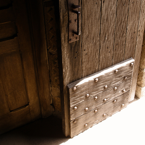C’è, poi, una parte della porta che è poco ricordata, poco vista, solitamente superata con passo breve e rapido, e che invece una nostra sosta la merita: è la “bussola in legno”, quell’entrata stretta e cieca, con la porta che solitamente si spinge, quella sorta di cassa di legno posta all’ingresso delle chiese. Non ha solo la funzione di tenere fuori il caldo e il freddo. Svolge piuttosto una funzione preparatoria: a ben vedere, lavora sul corpo e sull’anima.